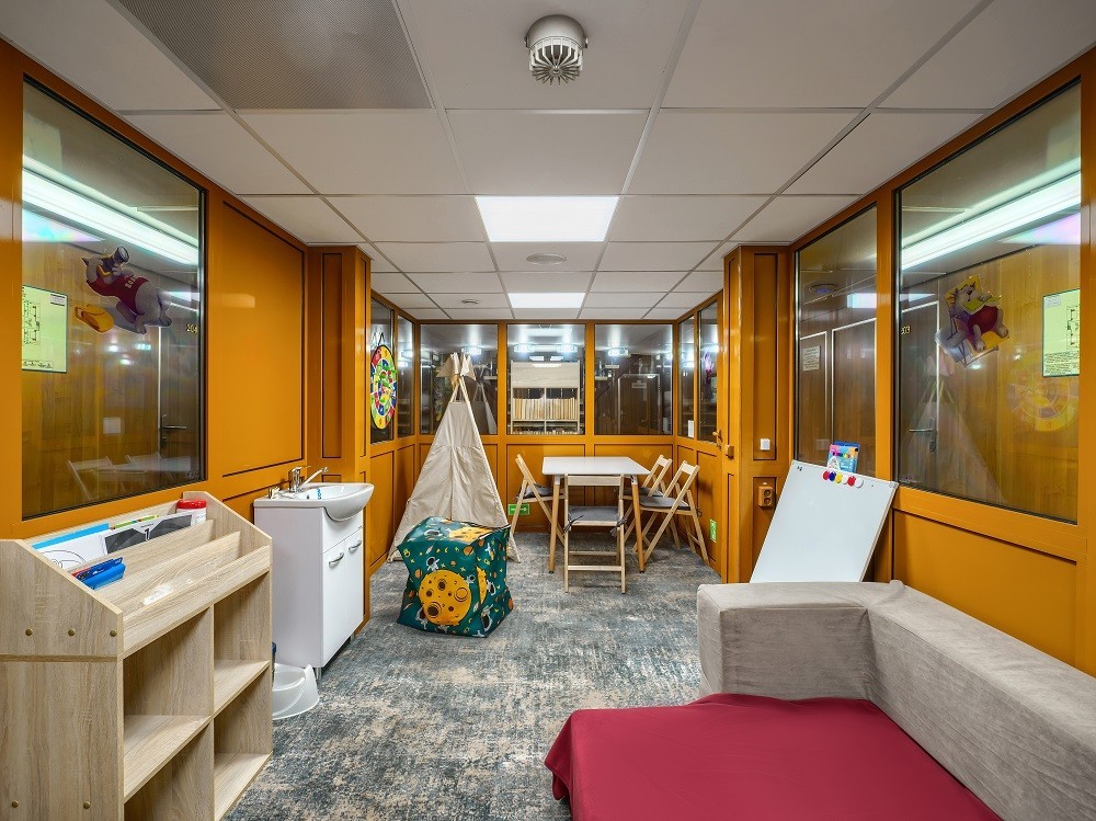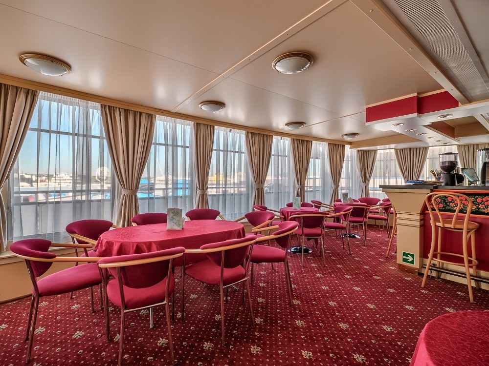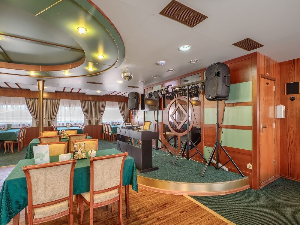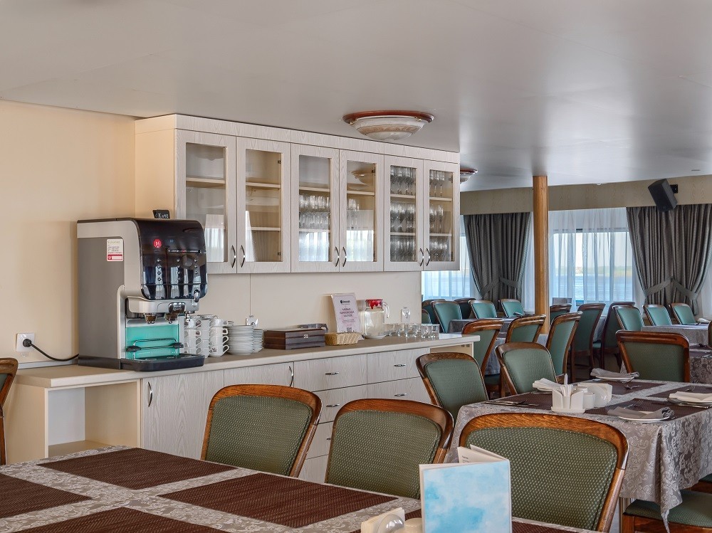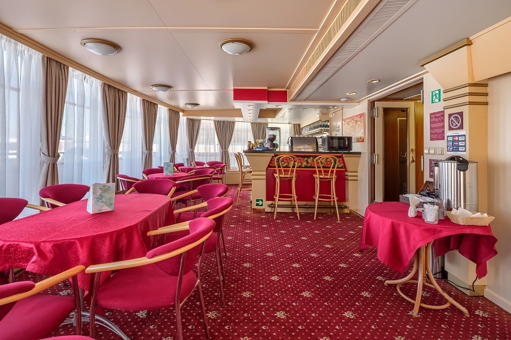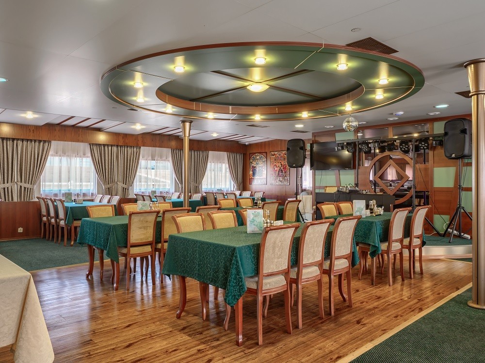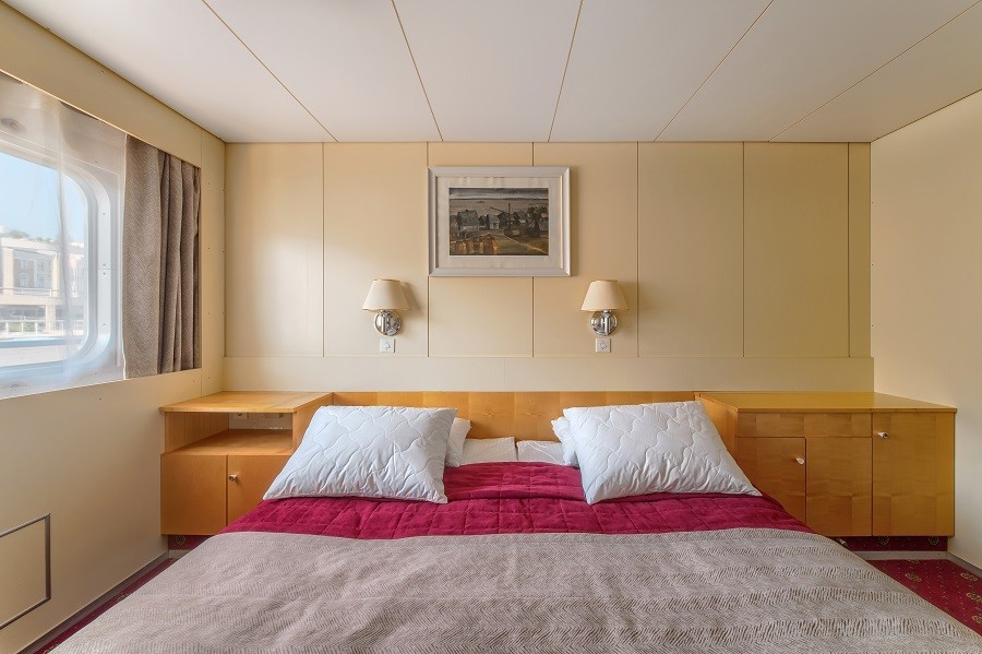 На теплоходе есть каюты разных категорий: 2 каюты «Люкс» с дополнительным комфортом и сервисом, 10 одноместных, 128 двухместных одноярусных и 6 четырёхместных двухъярусных. Каюты оснащены всем необходимым для удобства — шкафом, холодильником, кондиционером, душем, санузлом и обзорным окном или иллюминатором.